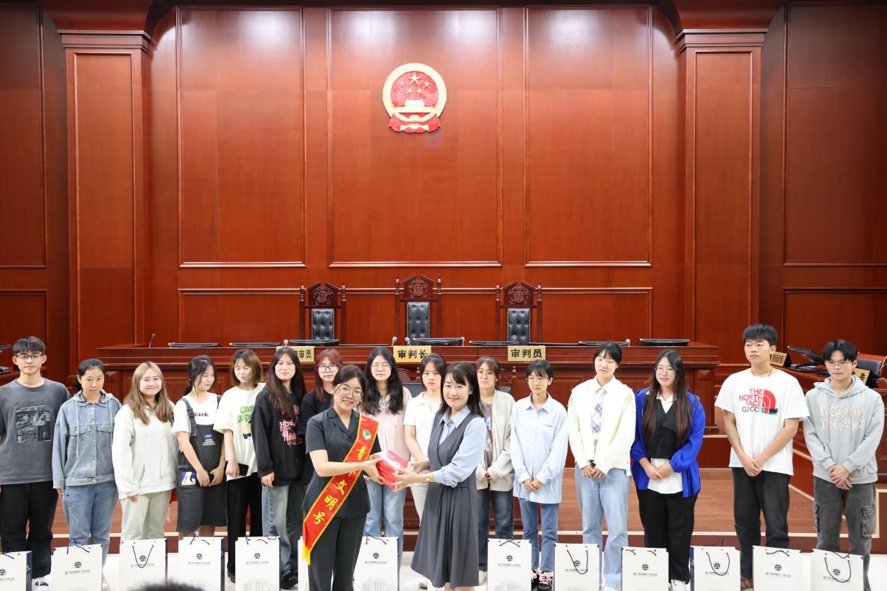 实践活动结束前,法院研究室主任向同学们赠送法律书籍,并祝福同学们在学习法律的过程中,培养正义感和社会责任感,为建设法治中国贡献自己的力量。