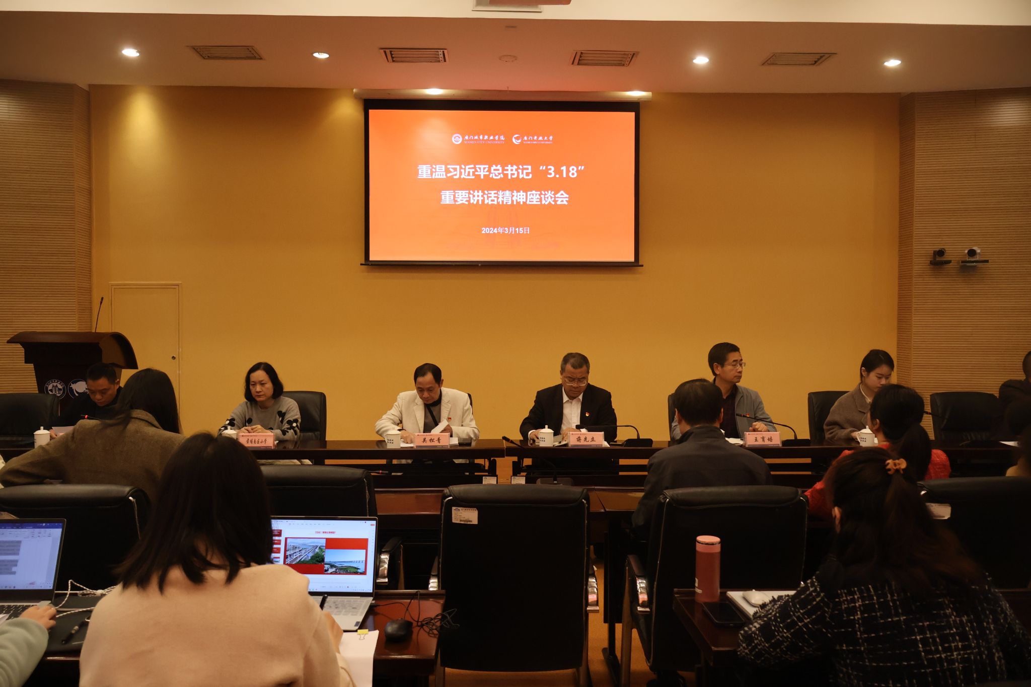 3月15日上午,我校在会议二召开重温习近平总书记“3·18”重要讲话精神座谈会,重新学习领悟2019年3月18日习近平总书记在学校思想政治理论课教师座谈会上的重要讲话精神,总结回顾我校思想政治理论课改革创新的主要举措及成效,对下阶段学校思政课建设提出新要求。